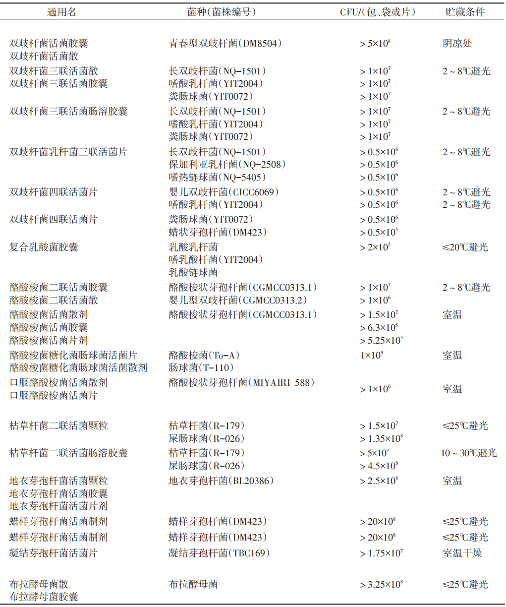 附表1.国内使用的益生菌