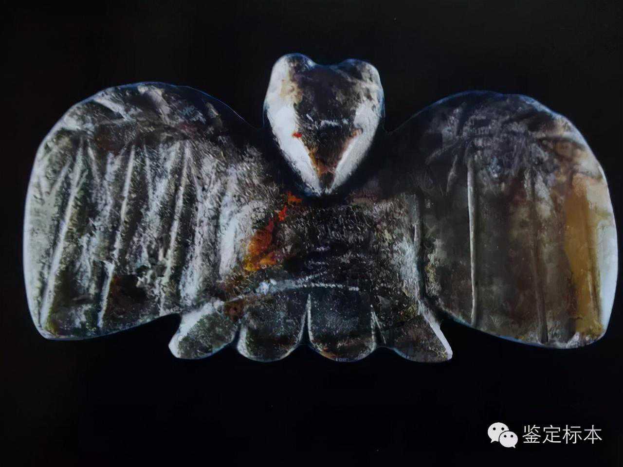 無耳為鷹,是太陽的象征,凸眼,折肩,雙爪在腹部,背部有兩個隧孔,典型紅山文化特征。