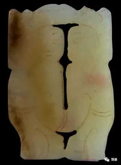 下面这块玉器可见底下一层受地表水沁变色。