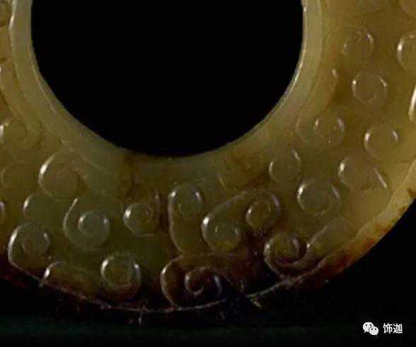 这里的“黄”字统指发生了变色的现象。玉器变色先从渠沟之处变化,色泽变深、变旧。要色变,一般需要百年以上。这种变色即使在明清玉器中也是常见的。