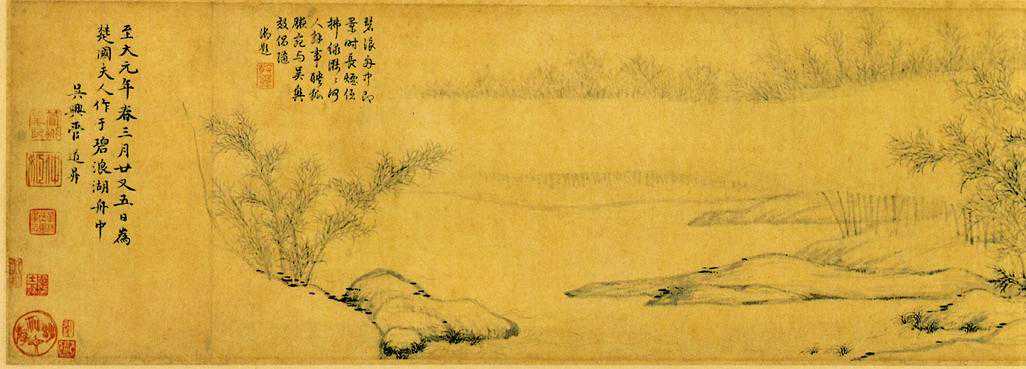 竹西草堂图元代张渥卷纸本墨笔纵27.4厘米横81.2厘米辽宁省博物馆藏