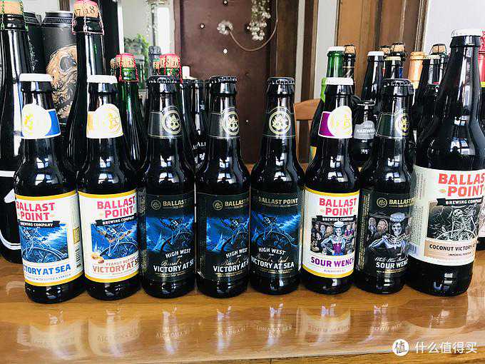 岬角/巴乐丝平,它是位于美国圣地亚哥的酒厂,由杰克怀特于1996年成立,也是自美国禁酒令以来圣地亚哥第一家精酿酒厂。其中最有名莫过于杜父鱼了,这款啤酒有很多种变种,楼主也喝过了大概5-6款。整个岬角系列之前收藏了10余款也是因为嘴馋都喝了。而这些是剩下的还没喝的啤酒,从左到右依次是,海上雄风帝国咖啡香草波特、海上雄风花生酱帝国波特、海威斯特过桶海上雄风、树莓醋意少妇、过白葡萄酒桶醋意少妇、椰子海上雄风。