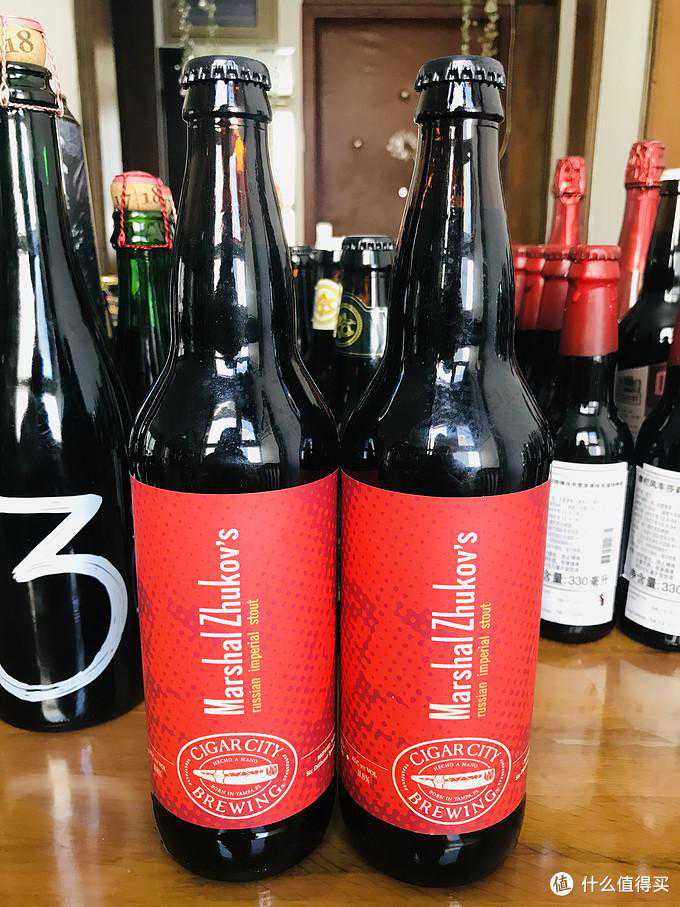 这瓶酒可是大有来头,这款俄罗斯帝国世涛是为了向乔治朱可夫致敬,他是二战时期最好的将军之一。不透明的黑色酒液充满了咖啡、巧克力、黑色太妃糖和黑蜜糖的味道,英式啤酒花提供了微妙的草药香味,并且在收口时会带给你一种奇妙的咖啡味。当然,朱可夫和三泉才是绝配,两者混在一起喝,酸中和了世涛的冲劲儿,世涛中和了酸的尖锐相互互补。
