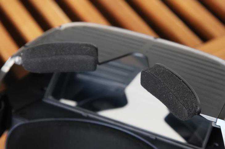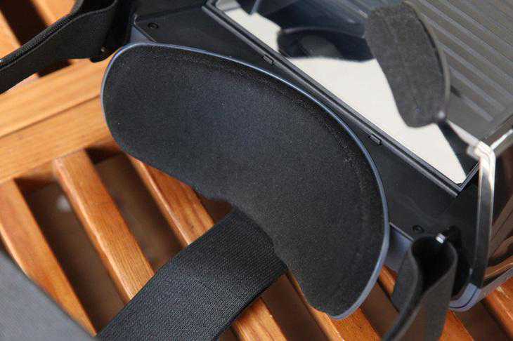 联想Mirage头显的额头和面部位置有三块很厚的海绵垫,能够最大化地增加用户佩戴舒适度。
