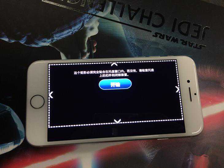 头显与手机的适配还是比较简单的,只需在手机上下载《星球大战:绝地挑战》APP,按照提示步骤进行即可。头显所用到的画面并非是手机屏幕的全部,所以在画面清晰度上,还是会有一定的缺陷。需要注意的是,头显中所显示的画面亮度就是手机屏幕的亮度,最好将手机亮度调制最大,并且关闭手机的自动亮度调节功能。