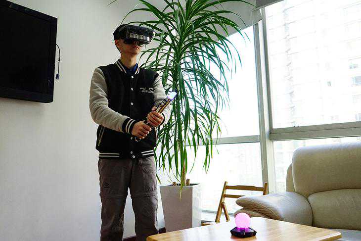 联想Mirage最大的特点是但你带上头显后,你依然能够看到真实世界,将虚拟图像叠加到真实世界当中,确实是一种非常奇妙的体验,但是带上头显后视野范围会降低,周围环境也换变暗,所以在体验时还是需要较为宽阔的环境。