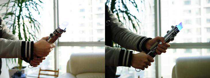 光剑控制器在细节上的还原不仅让人感叹,按键和装饰的位置都经过仔细调校,在做工上也非常精致。据悉,联想在控制器的外观和配重上面,进行了很多次修正,就是为了真实还原电影中的光剑。