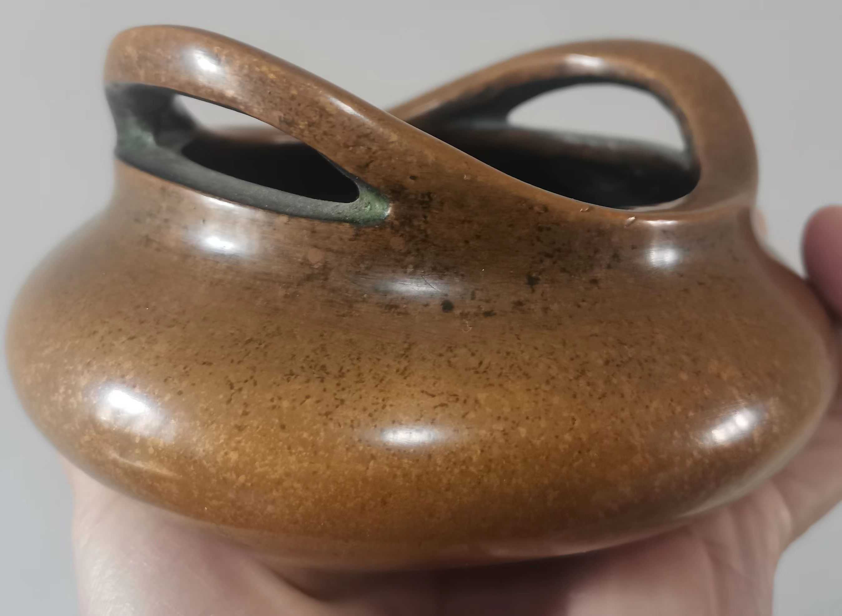 一藏友收藏的”大明宣德年制“款朝天耳枣皮红色宣德炉