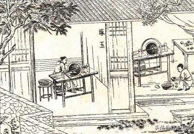 《天工开物》中的明代琢玉图