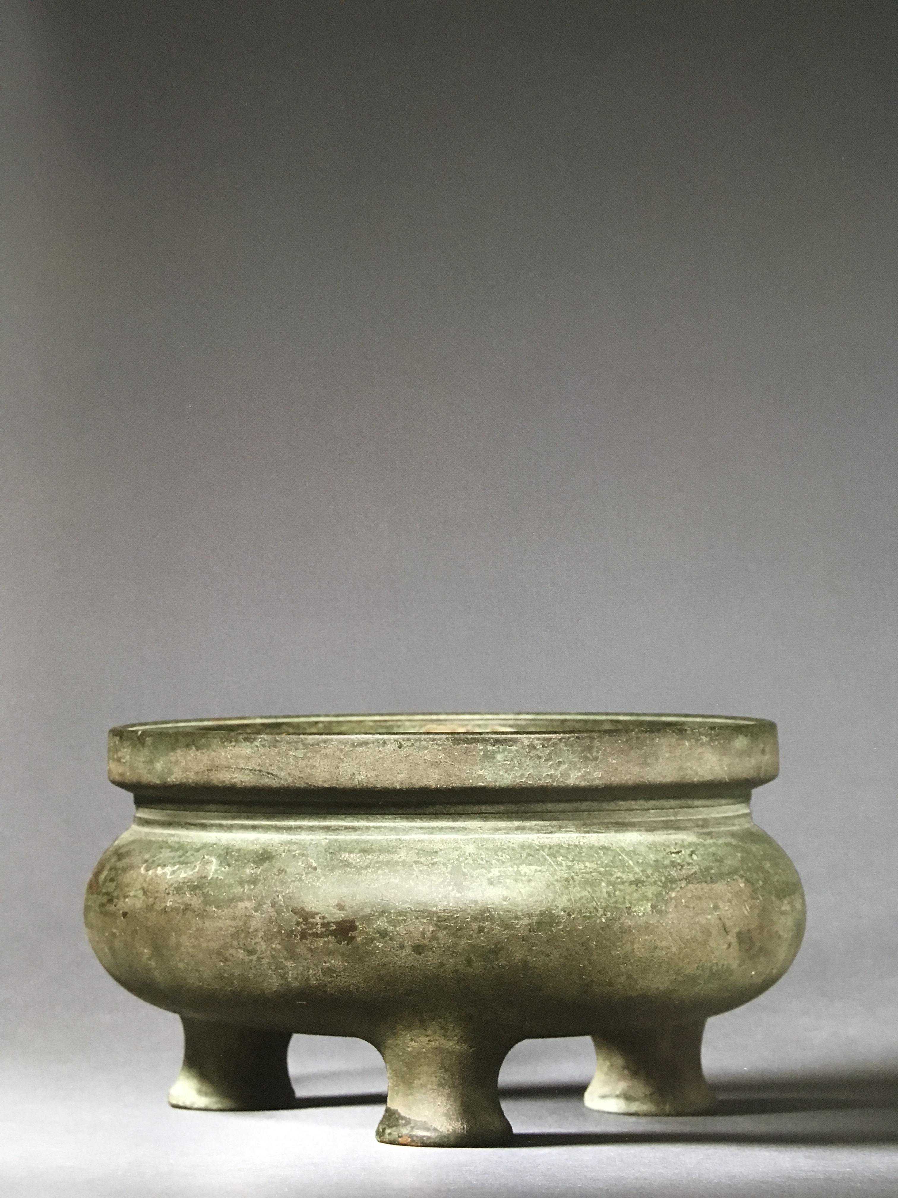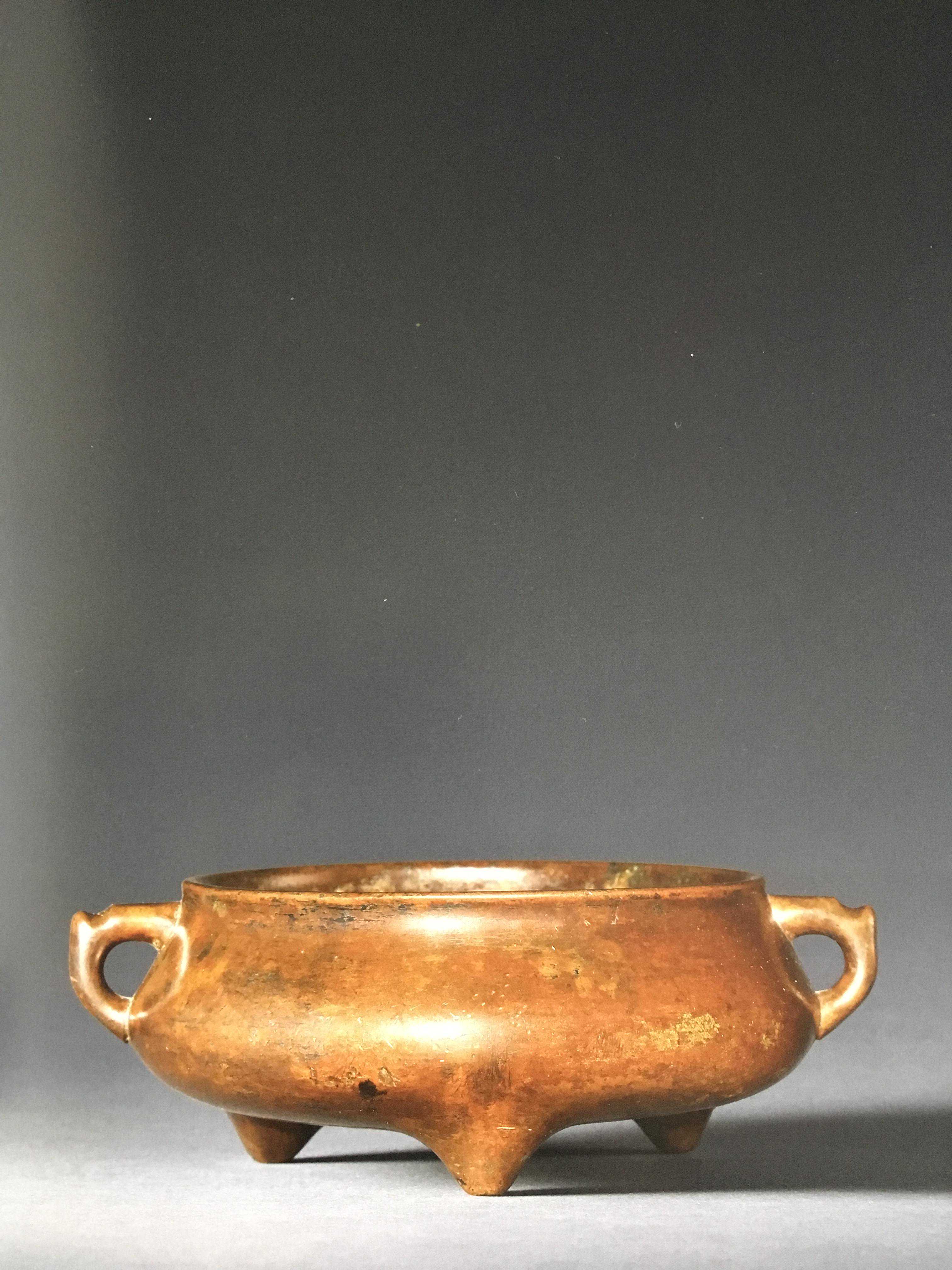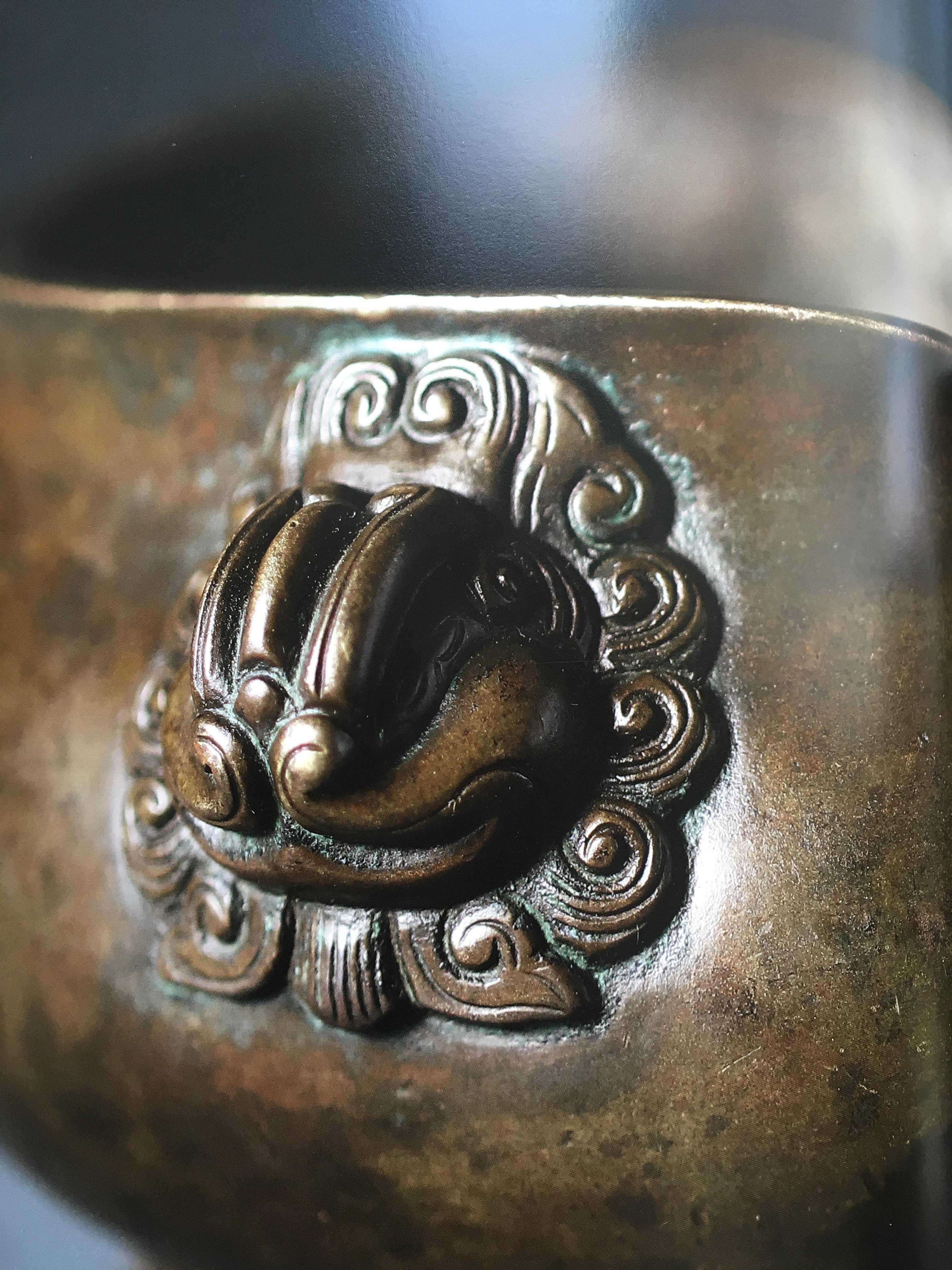当时的宣德皇帝认为所使用的祭器、太庙、郊坛所使用的器皿都太过粗糙,所以,下令用进贡的风磨铜并结合失蜡法进行铸造,要求按照仿《宣和博古图》,那么这里也就为大家提供了一个非常明确的铜炉鉴定的参考依据,如果某一天你在地摊上看见一件黄铜制所谓的什么北宋、南宋的铜器,那么大可以躲这些人远点了,铁定是没有的,甚至笔者还曾经见过有焊接痕迹的铜器制品,这也只能是笑而不语了。