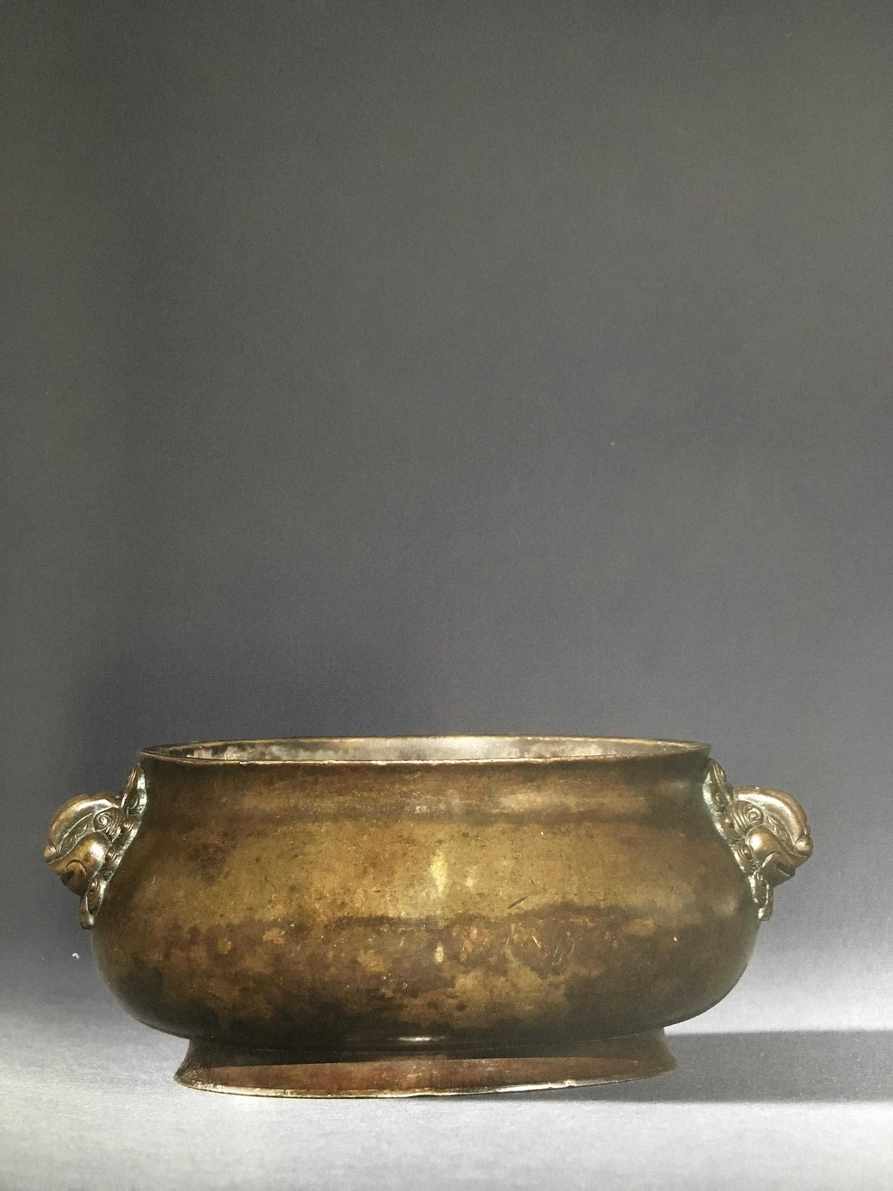 主要用于佛堂寺庙中使用,是宣德炉中炉耳变化最多的器型,常见耳式有:圆耳、圆耳带凹、圆耳带环、方耳,其中圆耳带凹和圆耳带环者传世最少。