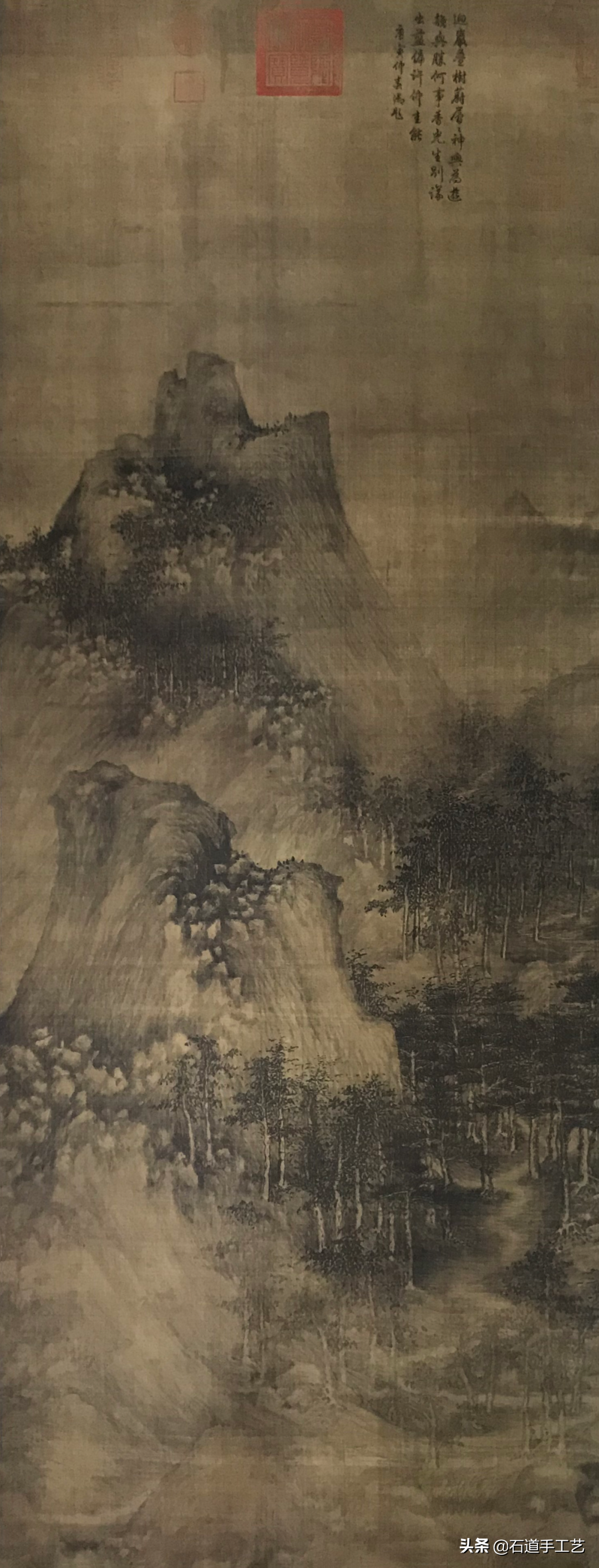 马远(12世纪中叶-13世纪上叶),河中人。号钦山。与夏圭同为南宋画院后期的著名画家。画学李唐,精于山水,用焦墨画树石,以大斧劈带水墨为皴。画峭峰直上不见其顶,或绝壁直下不见其脚,风格独特,世称「马一角」。是轴通幅静穆之韵,为马远画中精品。