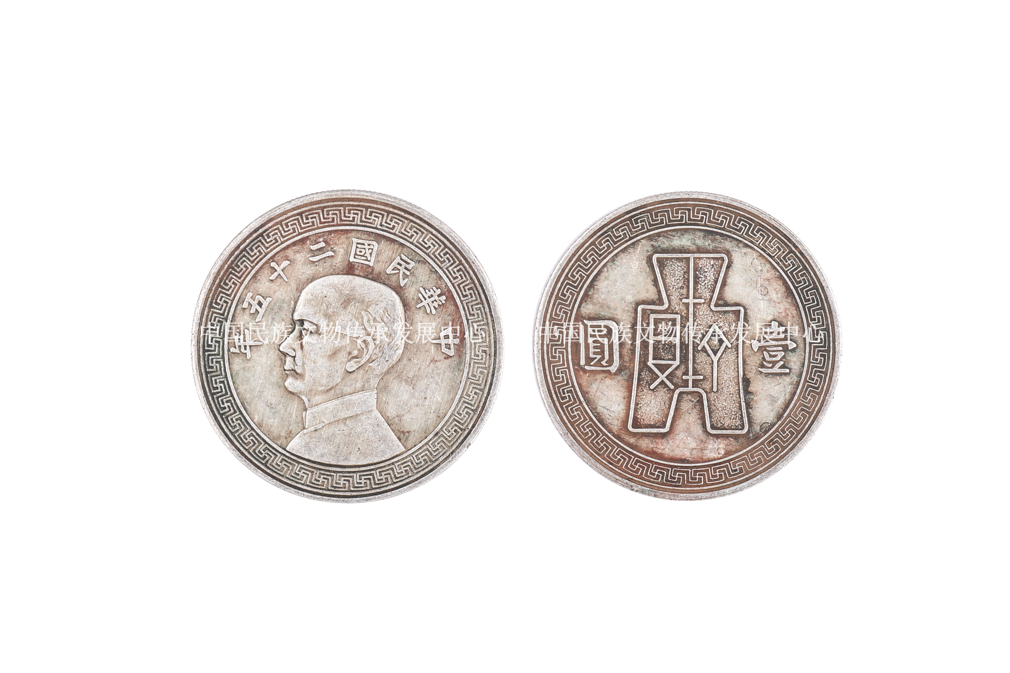 民国二十五年孙中山像背布图壹圆小型银币,直径32mm、成色七二、重20克。币模由前上海中央造币厂委托美国费城造币厂制作,系试作时之样币。改成古布图案设计之目的,是财政部计划发行减重降色银币时以此区分成色,又称“厚片”极为罕少。据说钱币收藏家王亢元曾为求得一枚直径32毫米的小型民国二十五年布图壹圆银币,竟动用了一幢洋房的代价