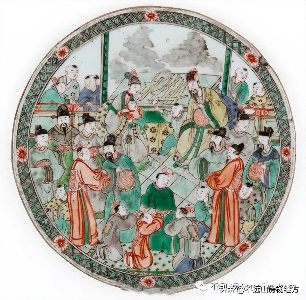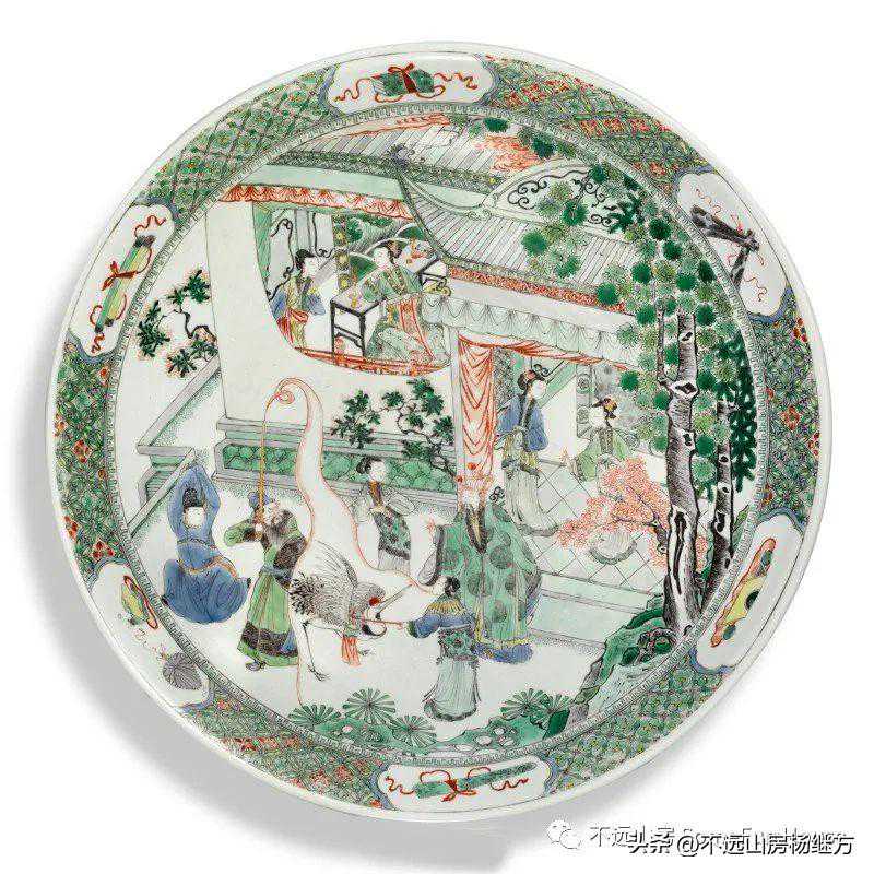 纽约苏富比2021春的康熙五彩人物图大盘,直径38厘米