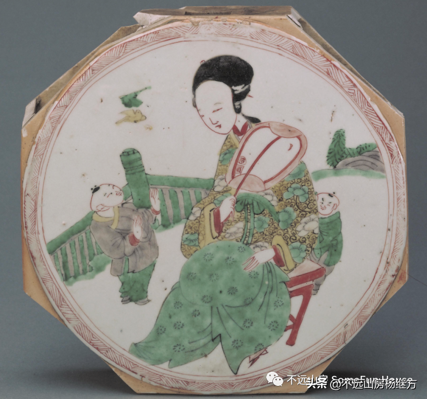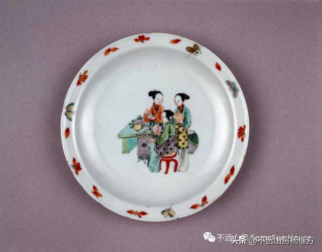清康熙五彩美人带子图盘伦敦维多利亚与阿尔伯特博物馆