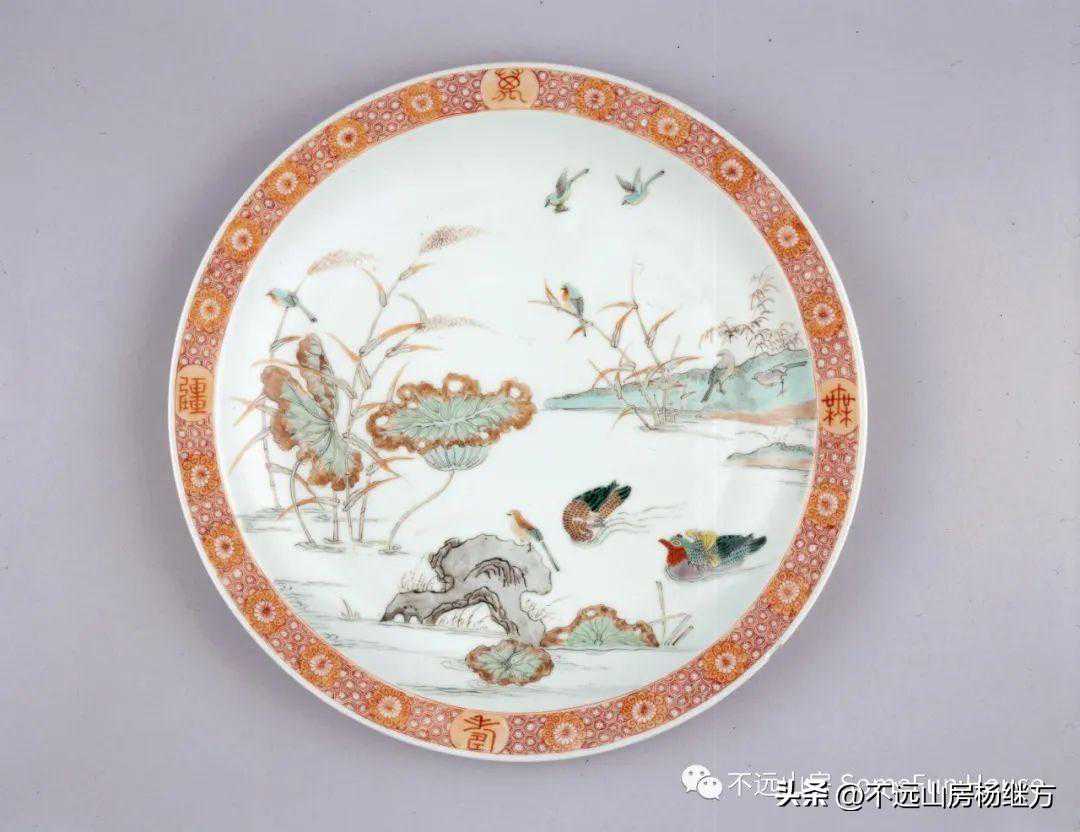 大英博物馆藏康熙五彩山水花鸟图盘