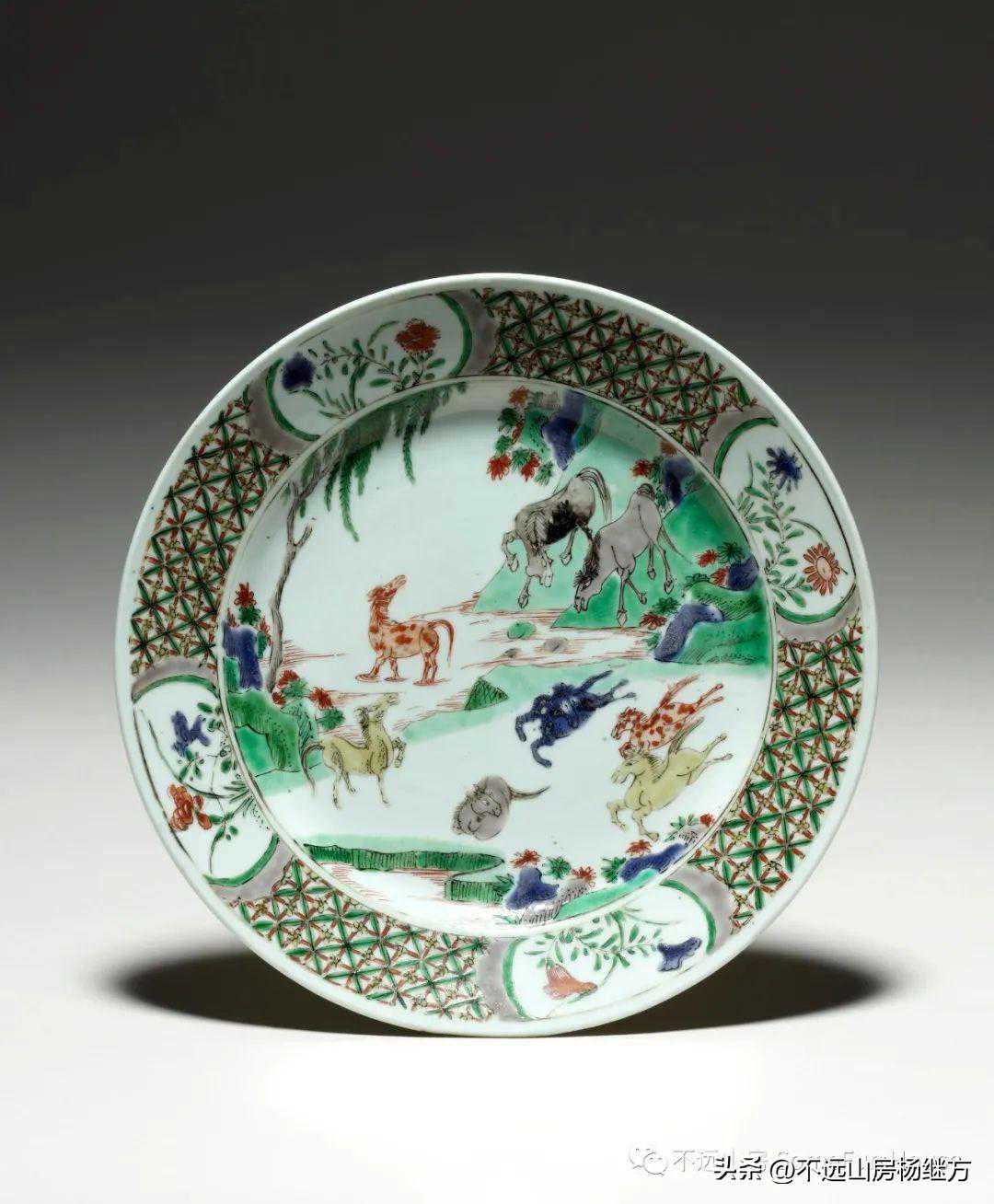德累斯顿国家艺术收藏馆藏康熙青花五彩+斗彩骏马纹饰盘