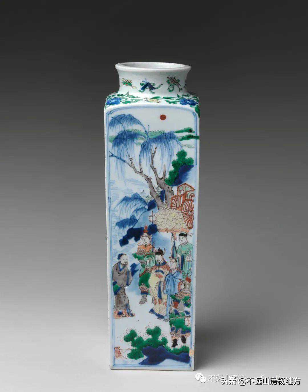 大都会艺术博物馆藏清康熙五彩人物四方瓶