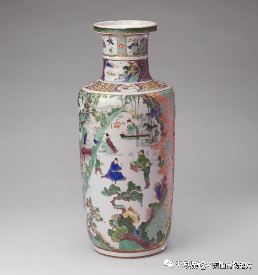 大都会艺术博物馆藏康熙五彩人物图棒槌瓶