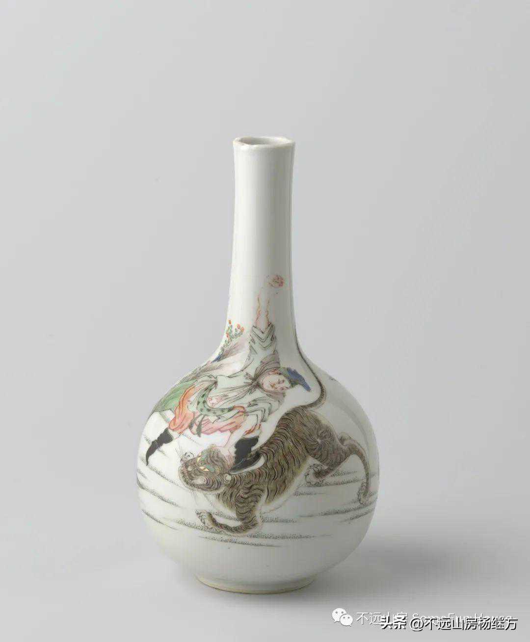 荷兰国立博物馆藏清康熙五彩描金武松打虎图长颈瓶