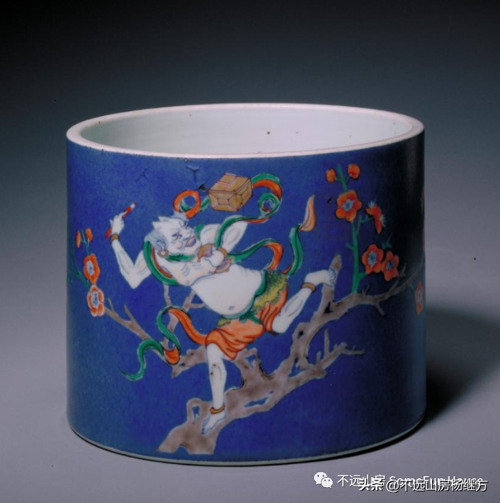 故宫博物院藏清康熙洒蓝地五彩魁星点斗图笔筒