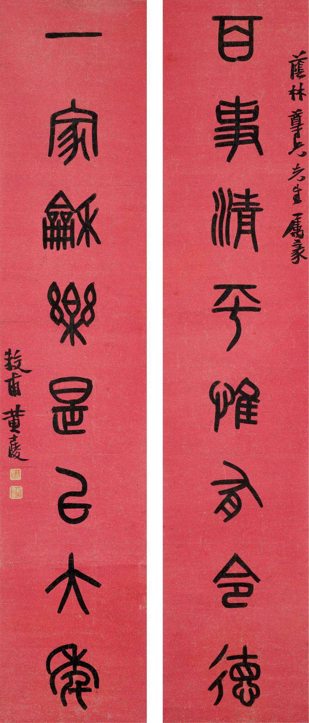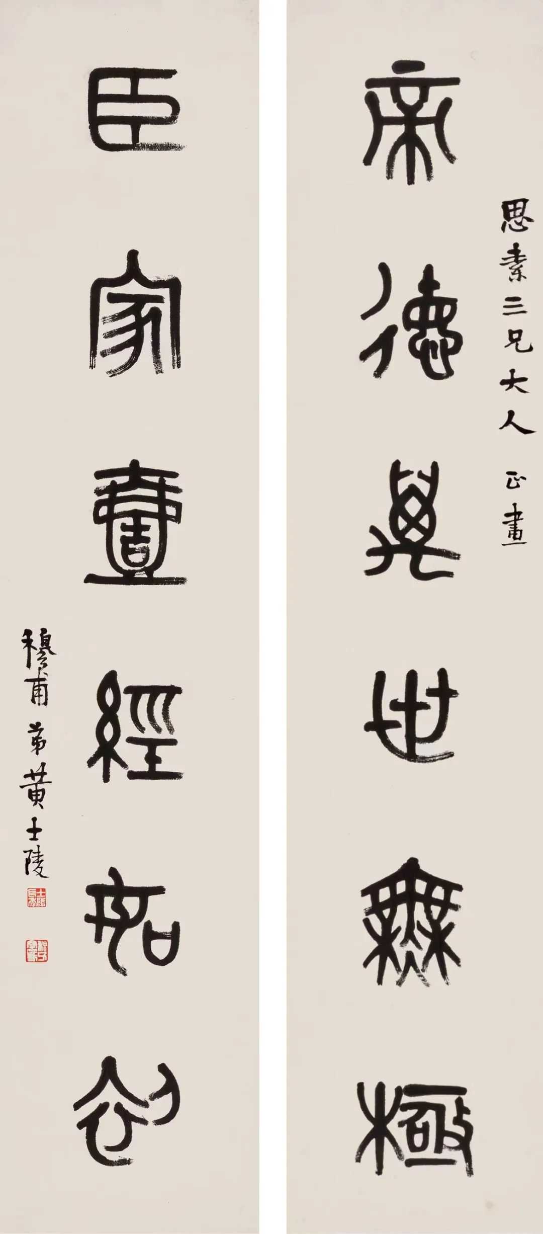 此次,笔者将介绍黄士陵金石书画作品数件,囊有篆刻、书法、博古图、信札等。形式则有对联、二屏、四屏、立轴、扇面、横匾、团扇、立轴等,可谓多样,亦足可窥黄士陵之艺术全貌。