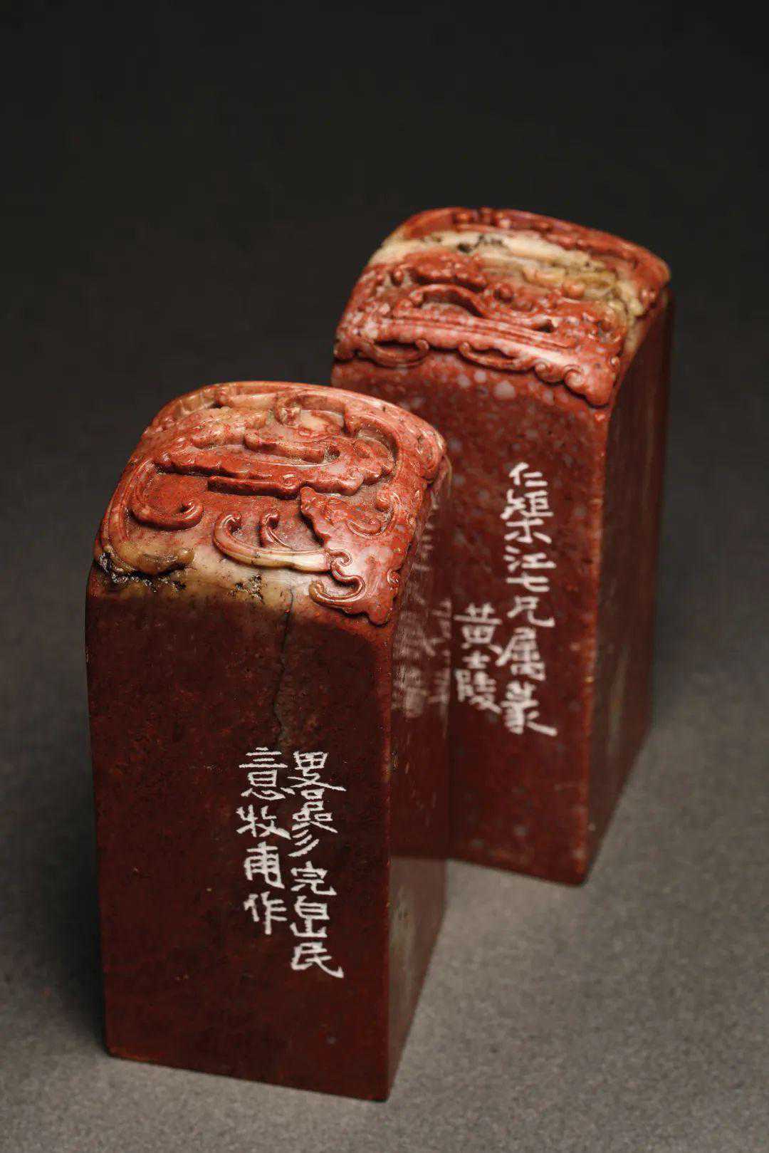 4279黄士陵刻“仁举江七季昭长年”寿山石博古钮对章