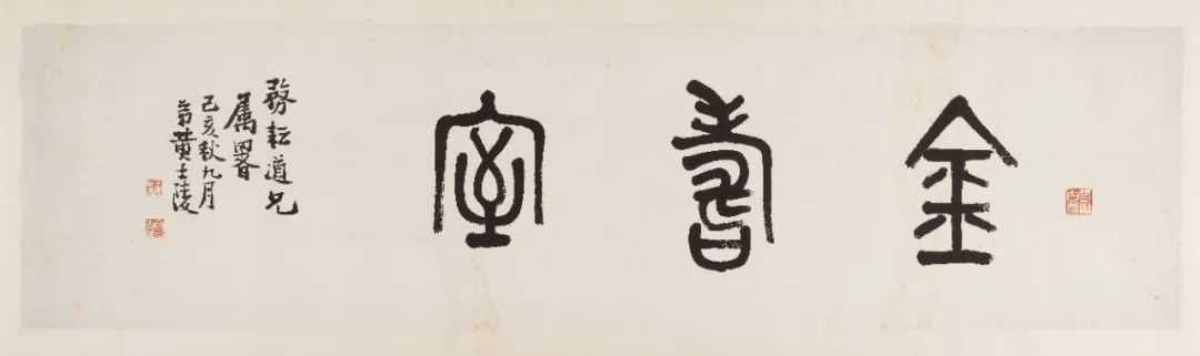 是作款识“务耘道兄属署,己亥秋九月”知为1899年秋,黄士陵为欧阳耘所写,“金寿室”为欧阳耘斋号。二者交谊颇深,黄士陵为其治印逾百方。