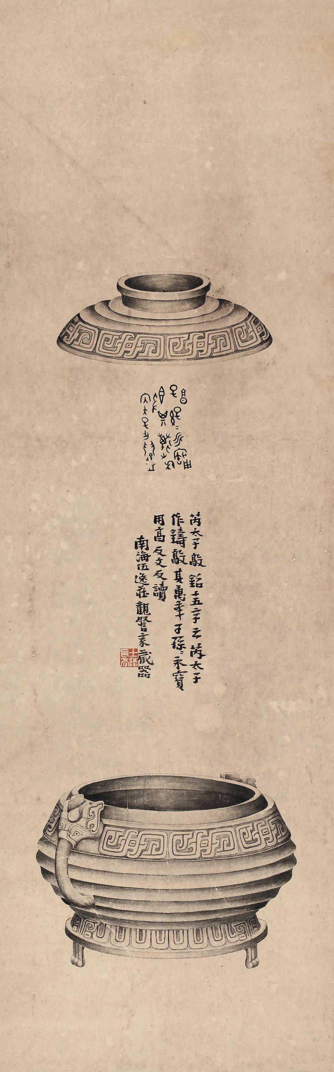 题识:芮太子敦铭十五字云,芮太子作铸敦,其万年子孙孙永宝用。享反文反读。南海伍逸庄观察家藏器。