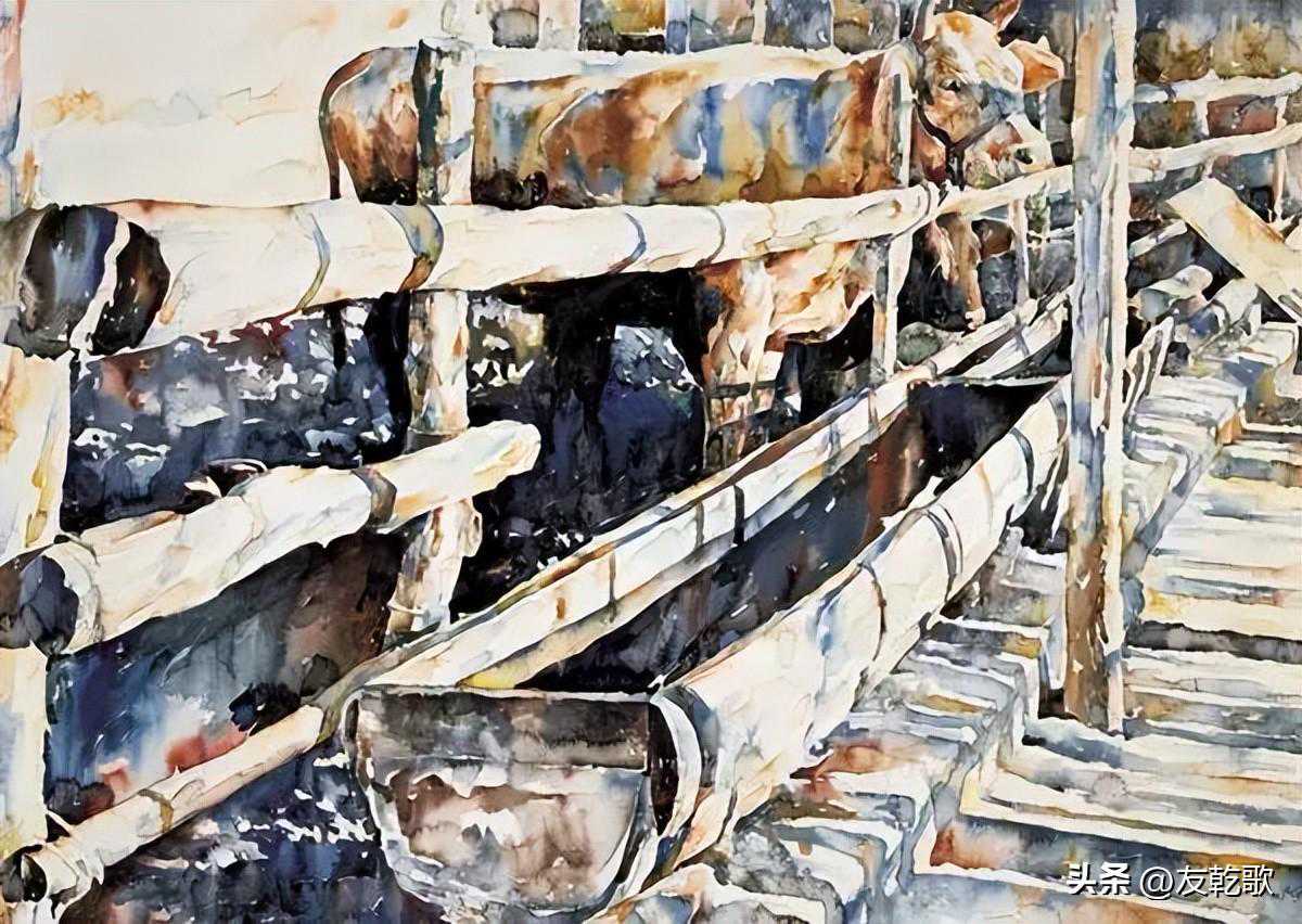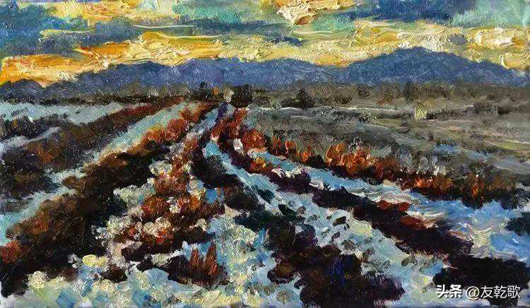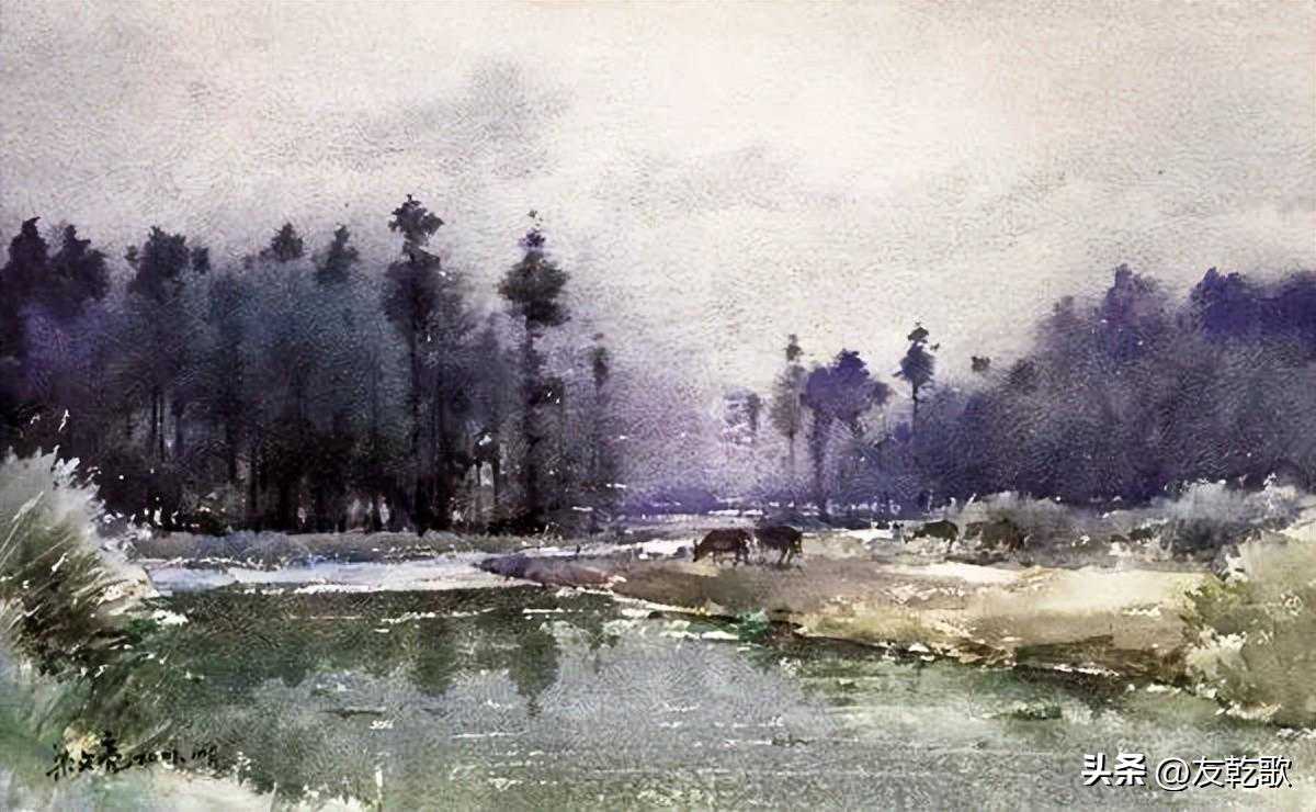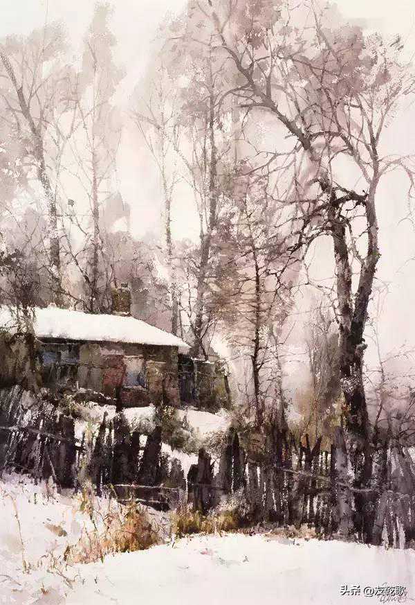 吕智凯《关山·冬日黄昏》水彩54x78cm