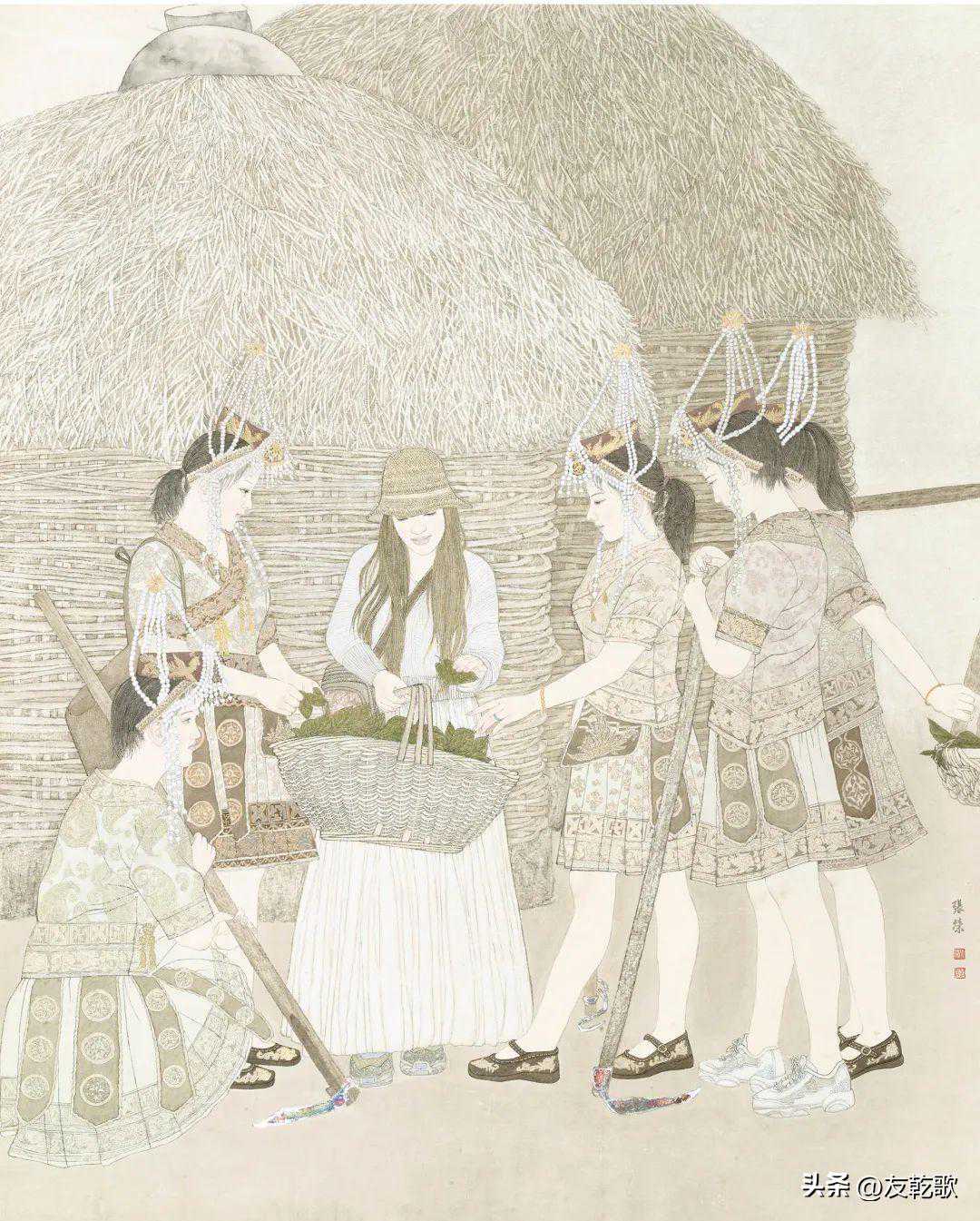 张荣《最美志愿者——养桑脱贫富畲乡》中国画220×180cm