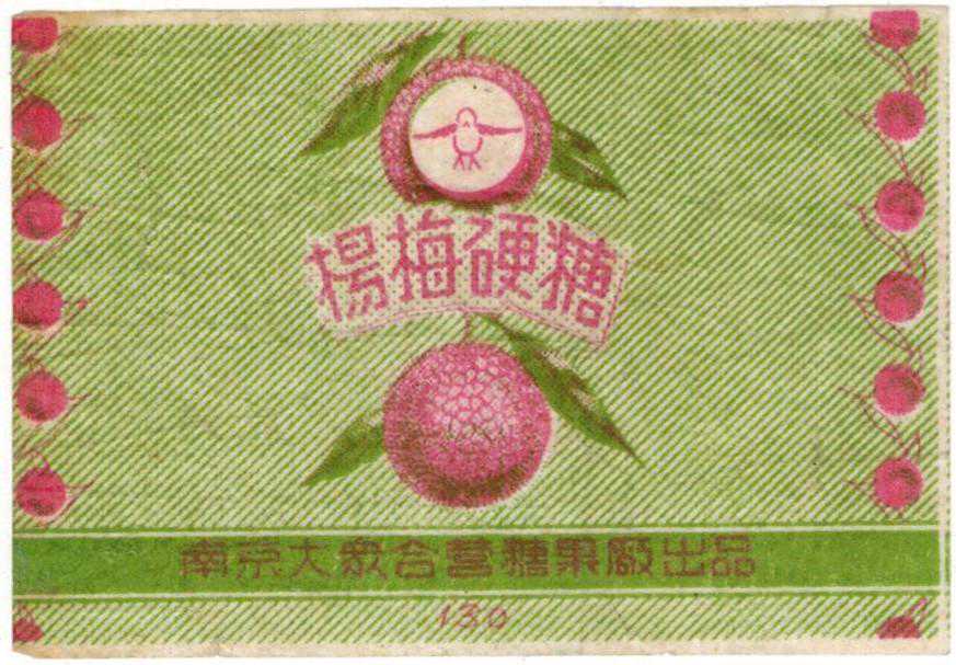 (一)南京大众合营糖果厂:由于年代久远,几经努力也没有查到这家糖果厂的资料。从厂家名称分析,应该是建国初期一些小的糖果厂合并后的联合厂。
