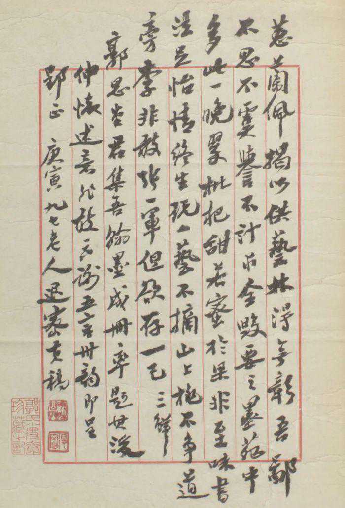 记得朱豹卿先生读到陈兼与(声聪)晚年翰札,评价其书法功力不下沙老。我自己并没有为老人做过什么事,借那几年结社时,同好们的那点理想主义色彩,凭添文缘,实属掠美!