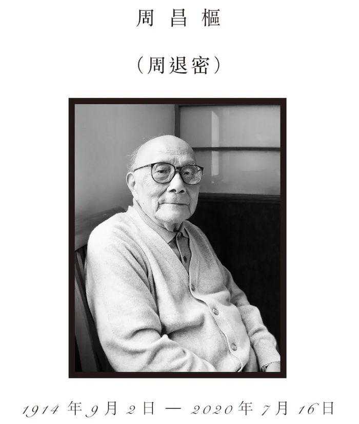 “谈笑生春养浩然气,陶镕归化具仁者风”,7月20日,107岁的知名文史大家、书法家周昌枢(退密)先生告别仪式在微雨中的上海龙华殡仪馆举行。周退密,原名昌枢,1914年生于浙江宁波,2020年7月16日......