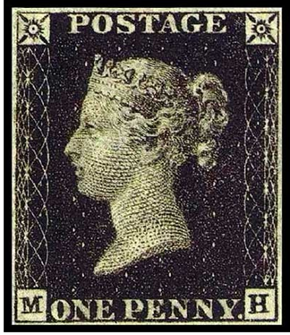 这枚邮票上印着维多利亚女王的肖像,因为是用黑色油墨印刷,所以被后人称为“黑便士”。