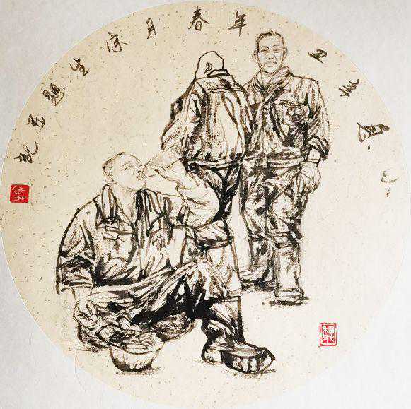 画家们通过画速写、拍照等方式,记录着一个又一个瞬间,汇录了大量的相关素材,为今后的创作搜集到了富有真情实感的第一手资料。今天在这里展出的是近一阶段部分画家的速写、草图、粉稿、小品,以及正在进行中的创作思路图样。