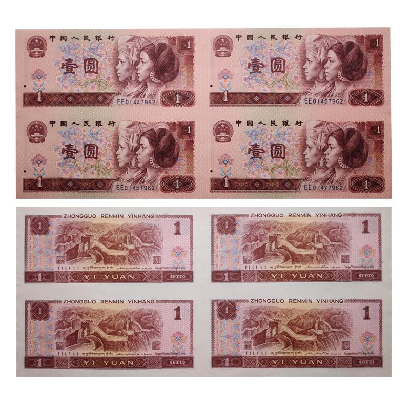 一元四连体发行于2000年,分别有80版、90版、96版各一张,总共面值为12元,发行量40万套,发行之初曾低至35元,随着时间的沉淀和消耗,目前一元四连体的市场价格在1500元左右。
