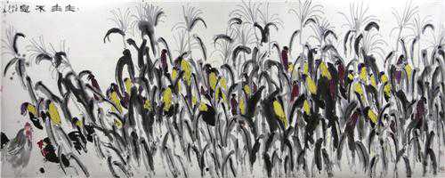 崔子范大师称赵言斌是大写意奇才,此言不虚。赵言斌的笔墨新思维为他带来了绘画理念、造型样式、绘画手法的新境界。他常想起恩师在他画之初亲授的画之道。恩师认为:“世界上绘画艺术可分为三种:一种是黑人的艺术,注重感情的宣泄;一种是白人的艺术,注重自然科学,讲究解剖和透视;还有一种是黄种人的艺术,注重哲学和文学入画。”如今赵言斌已深悟此道,因为他的构图原则和绘画语言,满是当代生活的节奏,自然山水的气息,花草的芳芳生灵的活力。