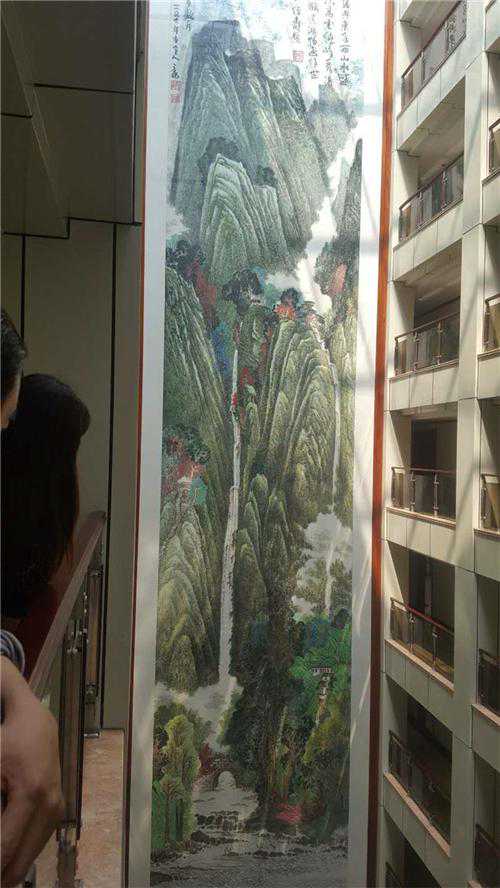 青山绿水楼中现2016年为山东金都建筑集团创作(黄山胜景)巨幅作品。高25米,宽5米,1125平方尺,是目前中国竖幅国画最大的一幅