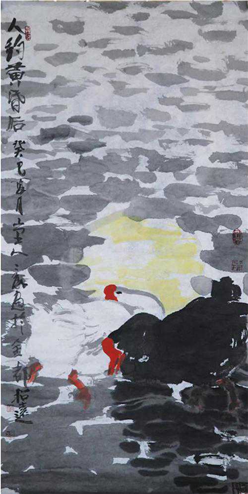 “贵在有新意”赵言斌的画是有新意的。在当前中国画坛,要画出新意来不容易。我说赵言斌的画有新意,是因为在他的画中有个性面貌,不雷同他人。他在前人创造的基础上,力图走出一条适合于他个性表现的新路来。他崇拜的大师和直接指导过他的老师,对他都有这样或那样的影响,这在他的作品中可以感受得到,可是他善于把这些因素自然的融合在一起,形成自己独特的创造,这是值得赞扬的,他之所以能做到把前人、别人的东西“自然的融合”于自己的作品中,是因为他作为艺术家有自己的主体性格,也就是说,有自己的见识和艺术追求。他的画很大气,有开阔的境界;同时,又有笔触、墨色所形成的线、形与色彩的微妙变化,经得起慢慢品味与推敲。健康、质朴、淳厚的审美趣味与创新的艺术追求的有机结合,形成赵言斌的艺术品质,予人以清新的美感享受。