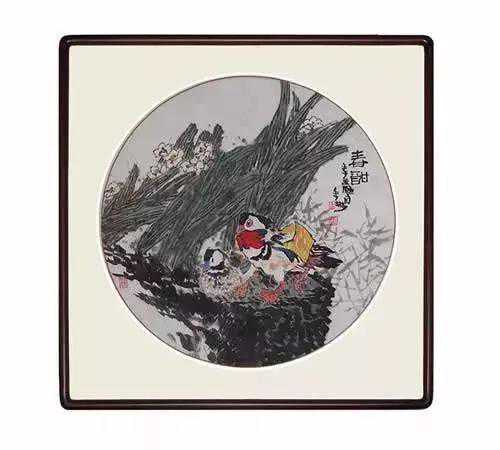 镜片(上三图),亦称镜心,是托裱后的画心,适用于夹放在镜框内,故称镜心。其形式横竖皆可,是一种简化了的立轴装裱形式,可装在镜框里悬挂欣赏。中国的镜框设计讲求简练,不重雕饰。