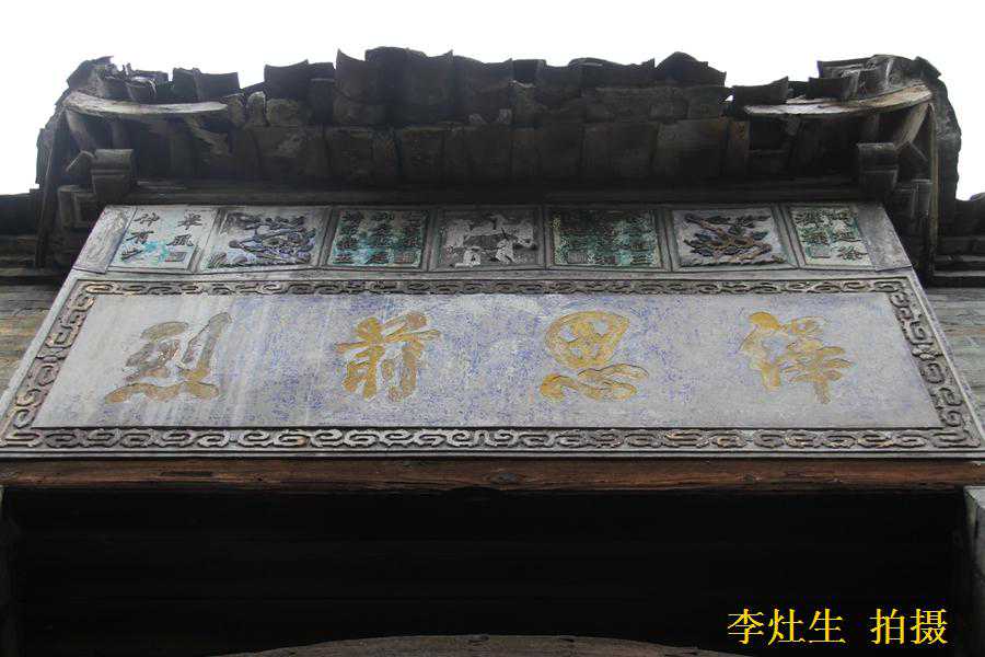 门媚上雕花斜棚上刻有自己喜欢的精短格言“泽思前烈”,字体有的古朴苍劲、有的行云流水,十分精致。上面绘以山石花草等,有“仲有家举风”,“靖节载五柳爱他处士家风”。“晋公植三槐漫羡相臣地位”。“门回徐穉榻”。
