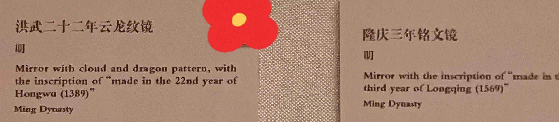元代铜镜的工艺已趋向衰落,一般沿袭宋金时代的铜镜图案,但纹饰已渐趋粗略简陋,同时各类形制不一的梵文咒语镜,也成为元代铜镜的一大特点。明代铜镜一般都比较大而且厚重,形制多为圆形,有柱形钮、圆钮和银锭钮,多纪年镜、吉语镜及带作坊名款的铜镜,纹饰有龙、凤和花草,并创新了一套八宝和杂宝图案,以表示吉祥如意。至清代,铜镜的铸造业已衰落,主题纹饰有龙凤、鱼、狮子滚绣球、双喜五蝠等。但明清两代的皇家造镜,亦不乏精品,散发着中国古代铜镜发展历史中的遗风余韵。