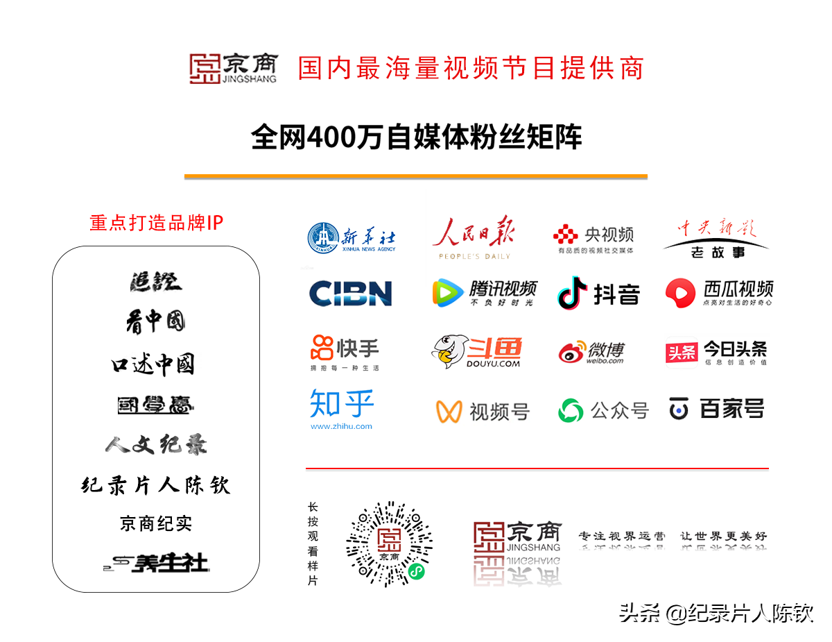 现今蓬勃发展的网络试听平台激发了市场的活力,多元化的优质作品层出不穷。催生了一个新的问题:在国门内与外,中国纪录片该如何发挥影像作用,真实的记录中国翻天覆地的变化,如何向大众、向世界讲中国故事?——品质为基石,宣推为助力。