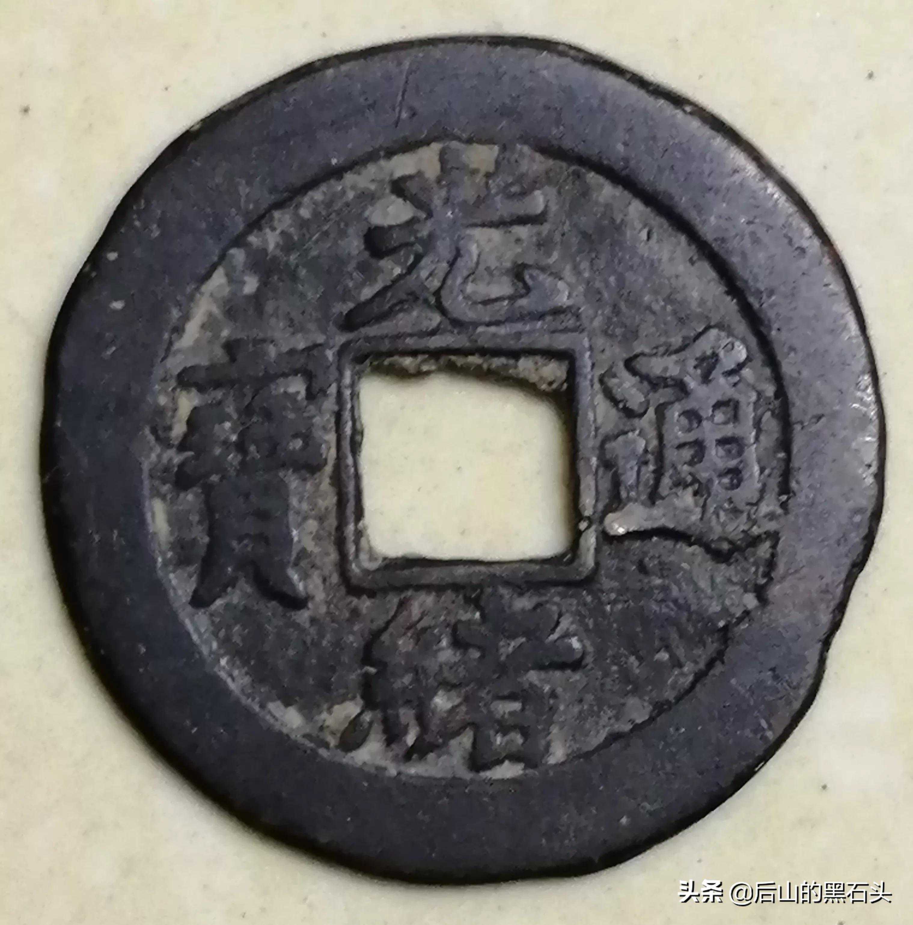 光绪通宝,铸行于清朝德宗光绪年间(公元1875年--公元1908年),背满文纪局。