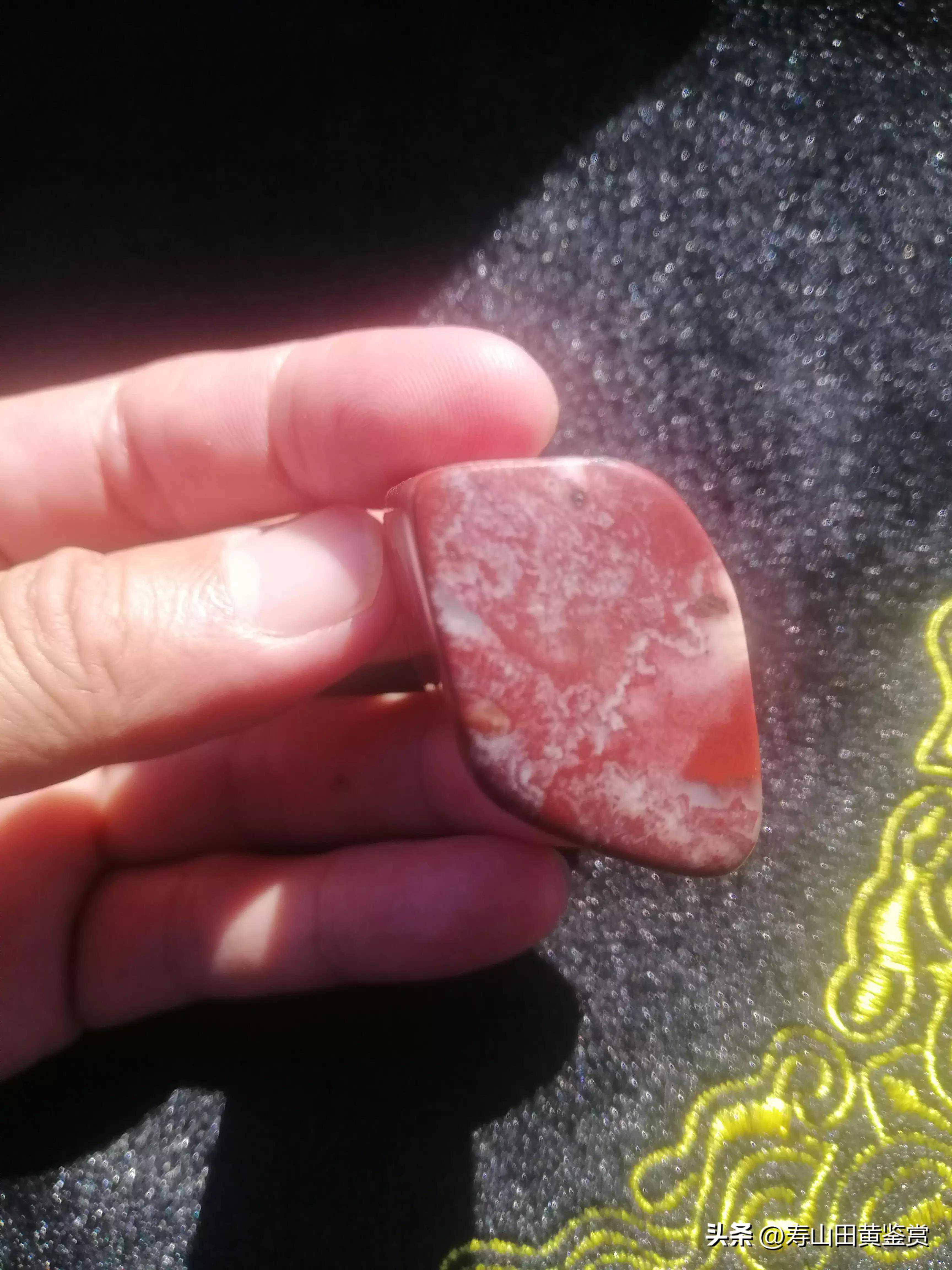 古著关于对“鸽眼砂”的表述:旧称“鸽眼砂”仅次艾叶绿,列第二名品。其色红如荔枝,也有似乌枣之深红色者,不透明,肌理含红色鸽眼状细点而命名。石质细润,是产于山坳砂土中的块状独石,地质学称为坡残积矿块。清......