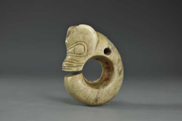 红山文化中典型的“玉猪龙”,出土时通常放置在死者的心胸处,这种似猪类龙的“兽形玦”,在当时被认为是人与神灵沟通的神器。