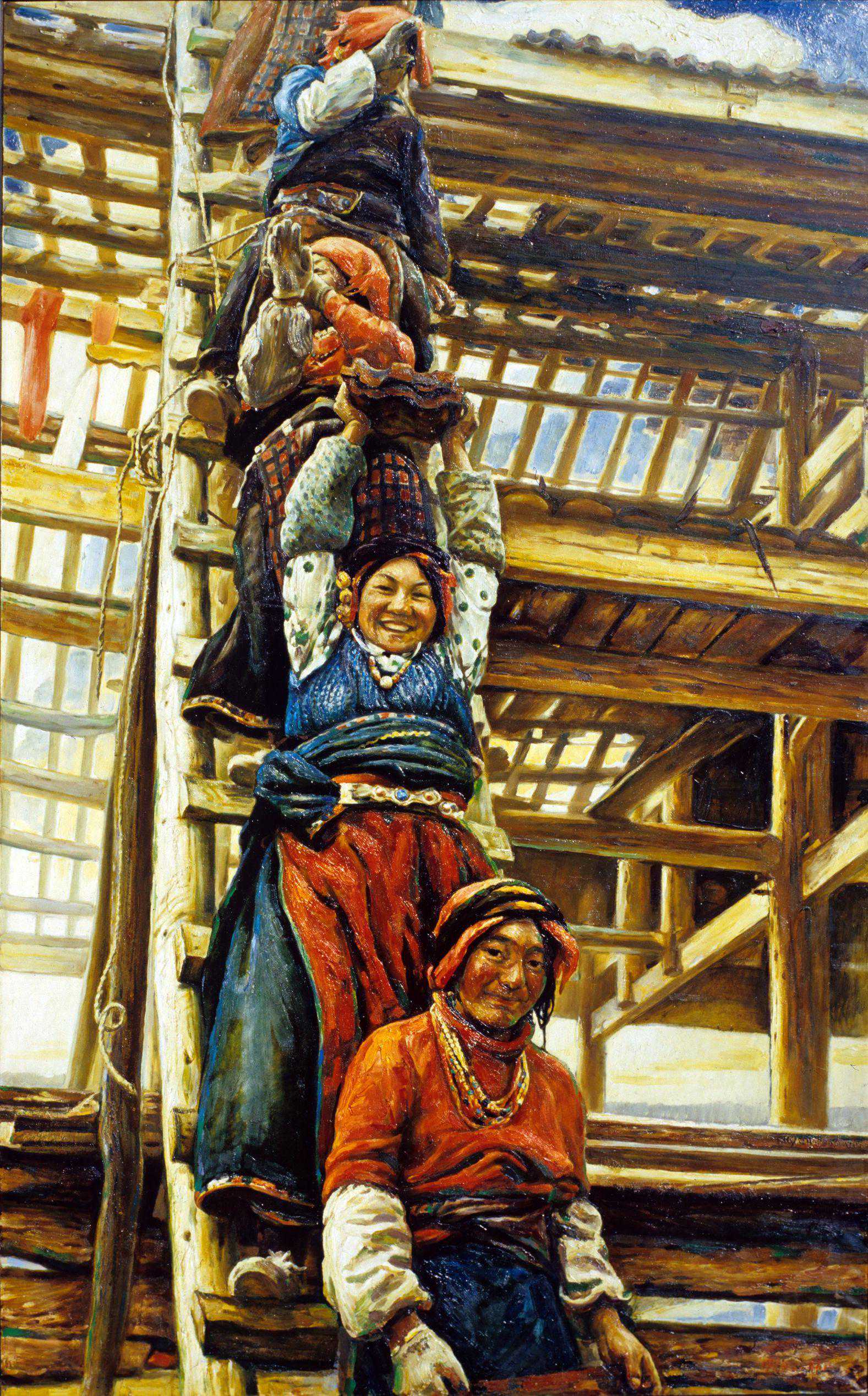 林山盖新房油画200x110cm1999年入展第九届全国美展获四川美展铜奖