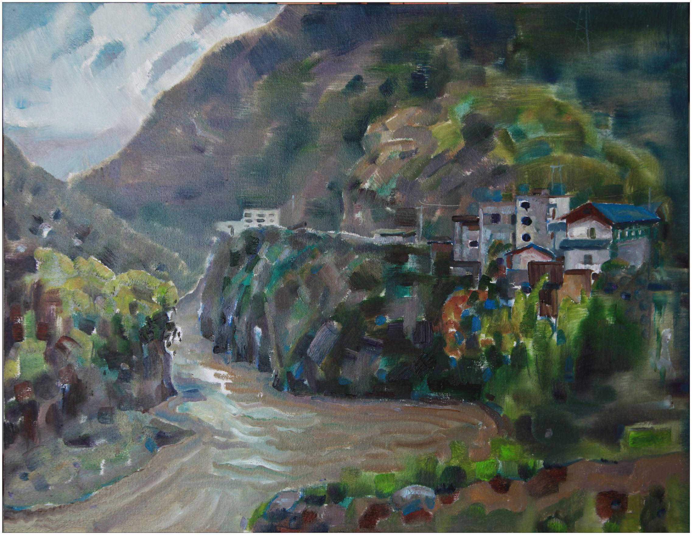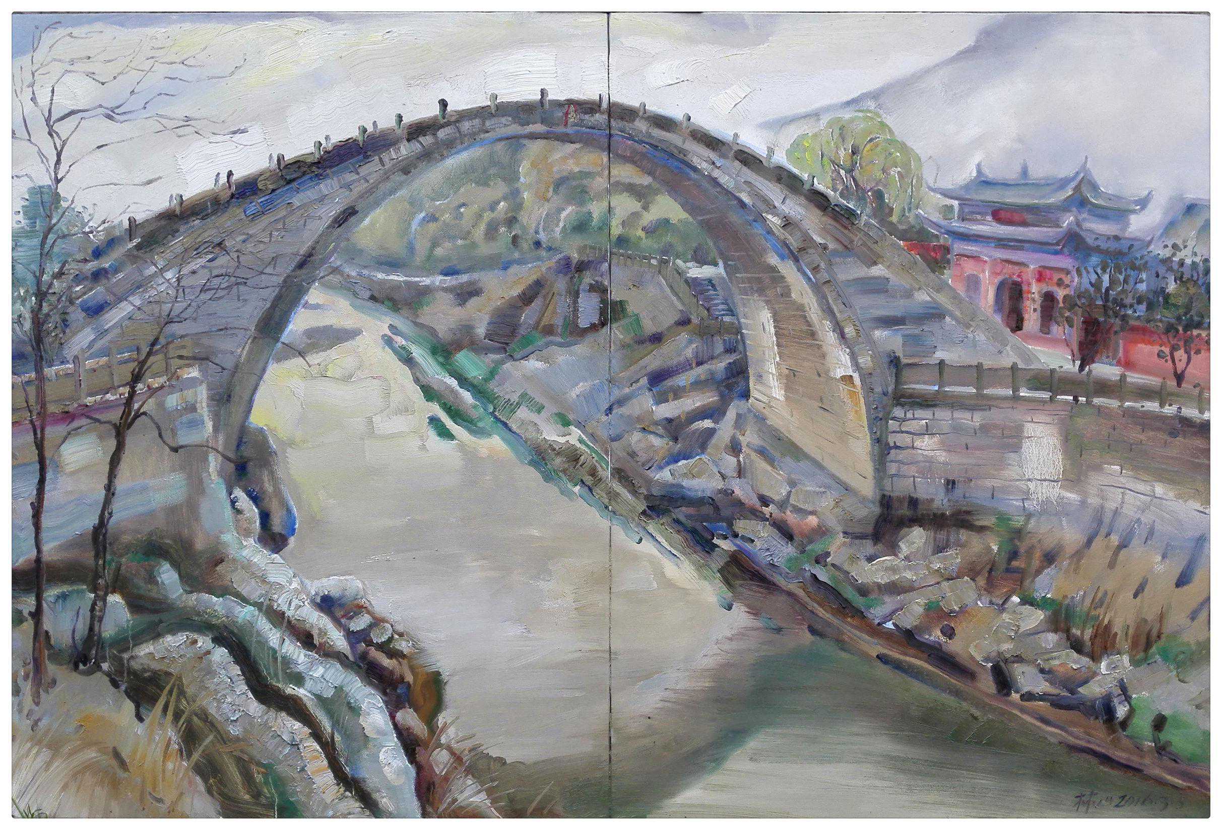 林山安县雎水关太平桥.惊蛰油画80x120cm2016年