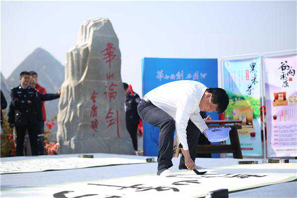 2017年10月26日,中国(华山)国际围棋大会其中的主要活动——书画名家“华山论剑”在华山北峰举行。上午九点,由华山文化产业促进会会长屈文龙带队,当代著名书画家一行五人以及部分媒体、工作人员,从华山乘坐索道抵达北峰顶。